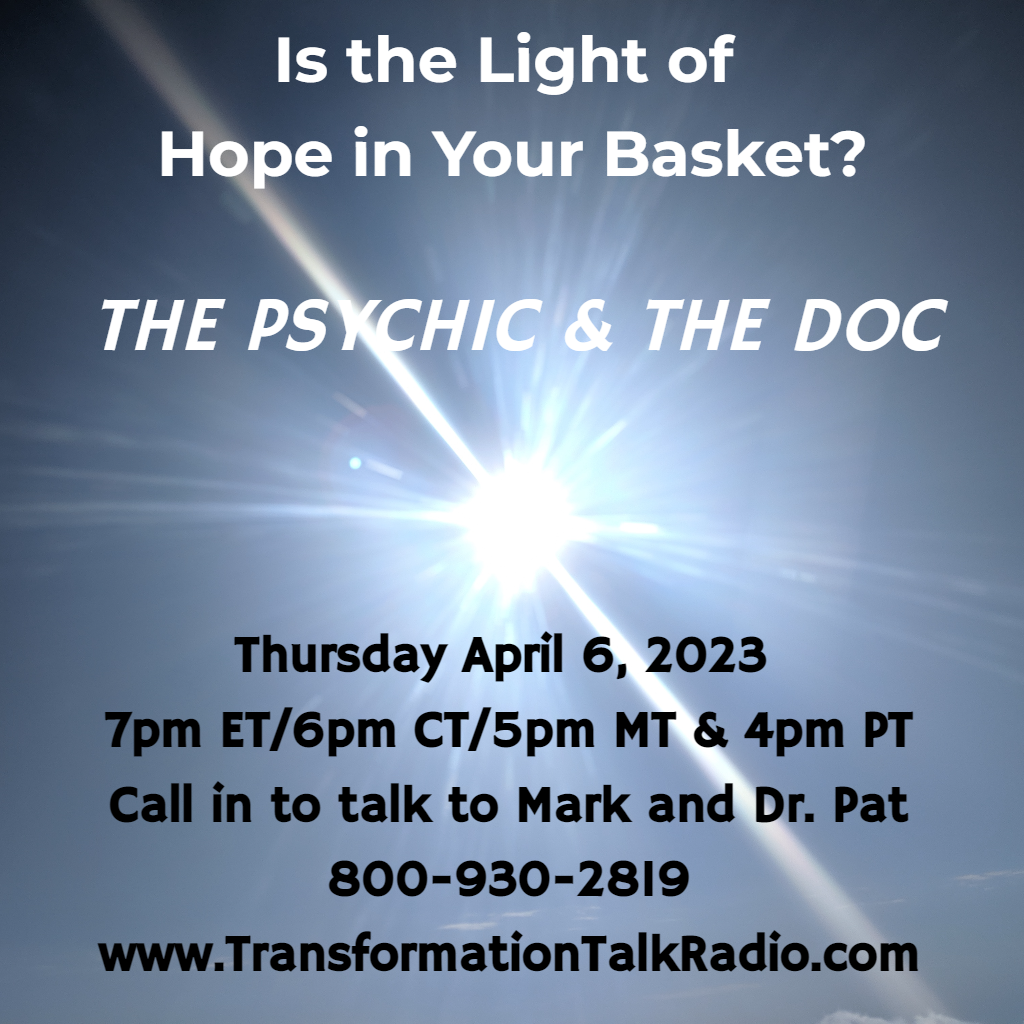 LIVE NOW - listen here Is the Light of Hope in Your Basket? April 6, 2023 4:00 pm PT 60 minutes Subscribe RRS feed Hosts Mark Anthony Dr. Pat Baccili #transformation#mark anthony#light#readings#readings#hope#dr. pat#pat baccili#easter#call in show#transformation#hope#passover#basket Subscribe