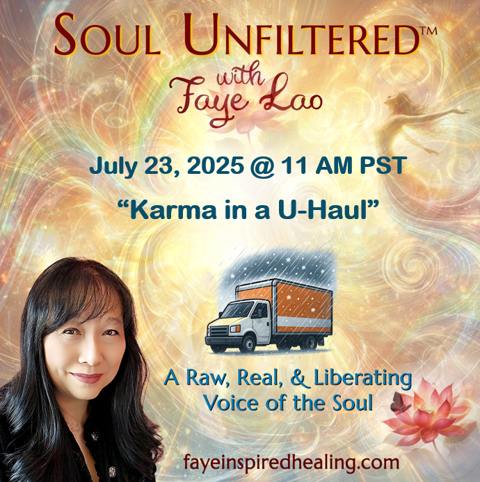 This first Soul Unfiltered™ story, Faye invites you to her debut episode "Karma in a U-Haul," where she shares her true story of loving a man filled with karmic lessons, timing and weather absurdities. It involves past lives, 14 breakups, 10 moves, 4 houses, 4 four states, and 3 screaming cats. Stay tuned to this real and absurd story of love and karma... Soul Unfinished... and Soul Unfiltered.